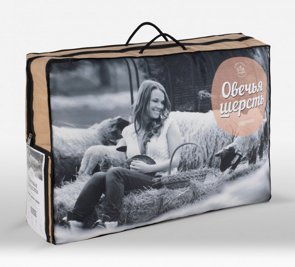 - Овечья шерсть (Wolly) — чистая мытая шерсть отлично испаряет влагу, обеспечивает тепло в морозы, не накапливает статическое электричество. Состав включает 70% овечьей шерсти, 30% полиэстера. Чехлы только из поплина и тика.