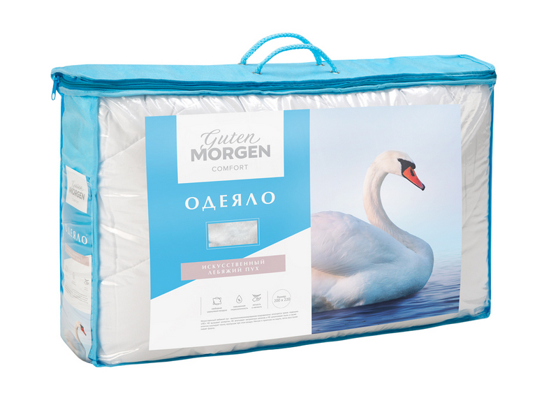 - Лебяжий пух (Fly) — искусственный наполнитель из 100% полиэстера, который хорошо держит форму, быстро высыхает, неуязвим для пылевого клеща, плесени. Чехол из 100% хлопка (поплина).